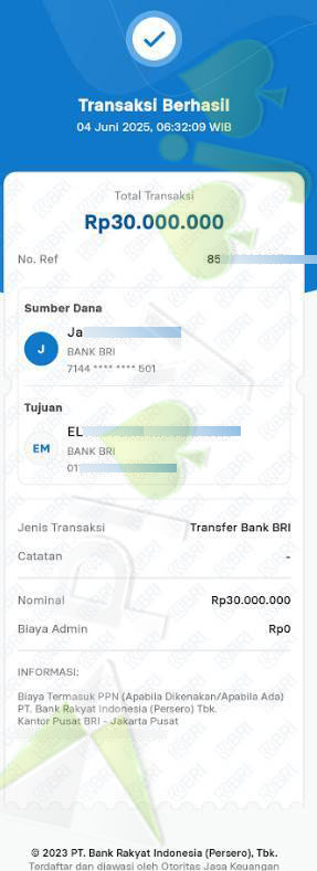 BUKTI TRANSFER JP MEMBER PLAYAJA