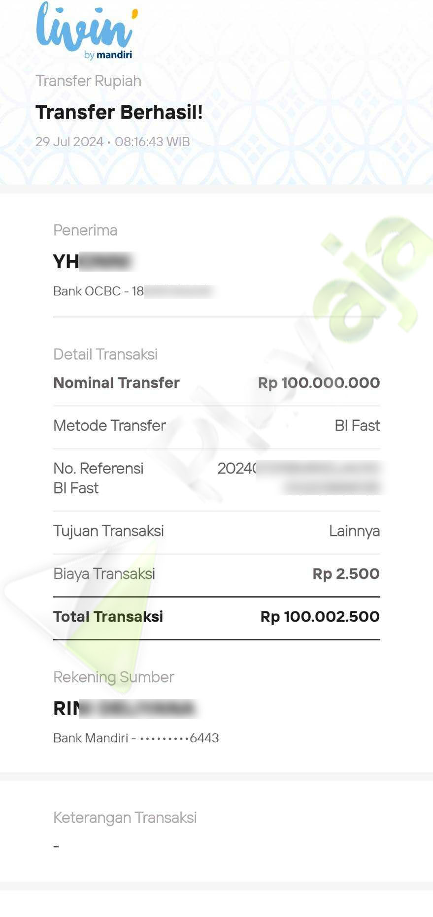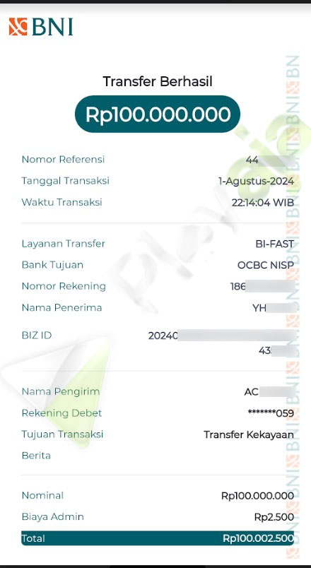 BUKTI TRANSFER JP MEMBER PLAYAJA