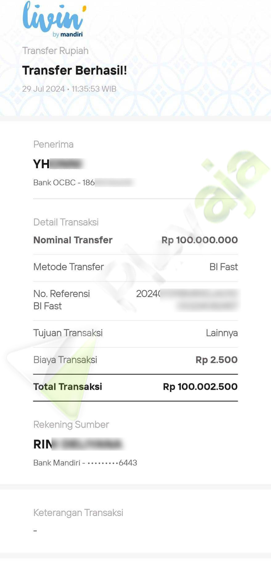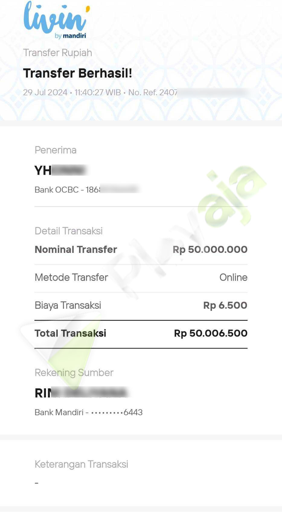 BUKTI TRANSFER JP MEMBER PLAYAJA
